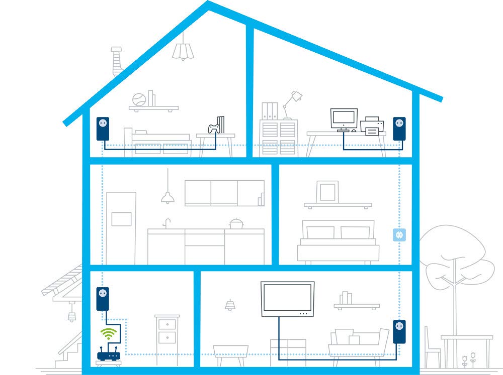 - Unaufhaltbar: Die Signal-Übertragung per Stromleitung überwindet Wände und Decken mühelos mit bis zu 1200 Mbit/s über Powerline.