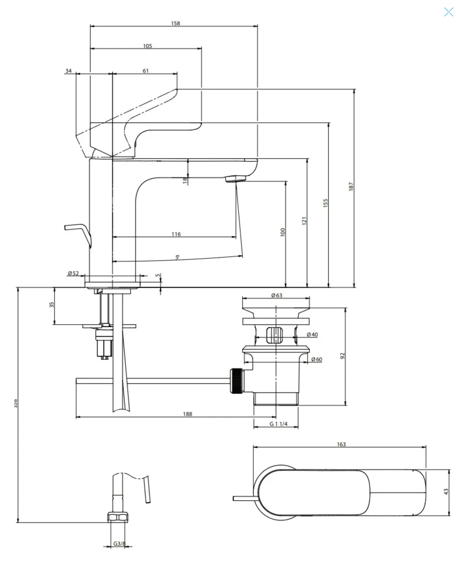 • Lieferumfang: Waschtischarmatur, Zugstangen-Ablaufgarnitur